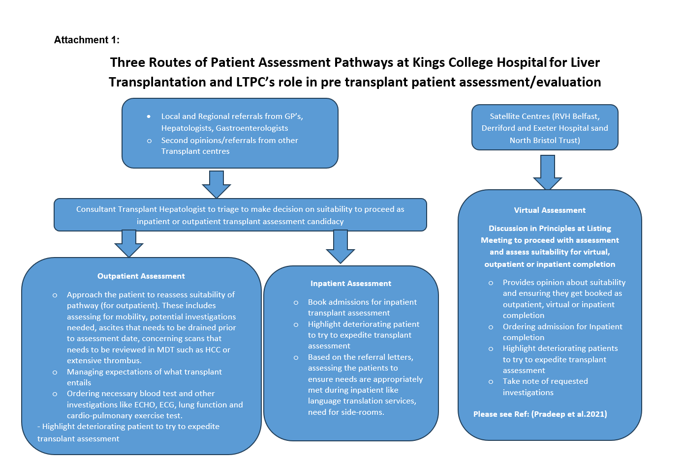 Following the receipt of initial referral LTPC’s conduct comprehensive, holistic assessments to determine patients suitability for transplant including eligibility for NHS care. See attached flow chart explaining the assessment pathways and process (Attachment 1).