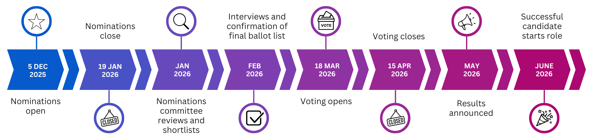 To support informed voting, shortlisted candidates will each provide a short video presentation responding to questions submitted by members through their elected councillors.